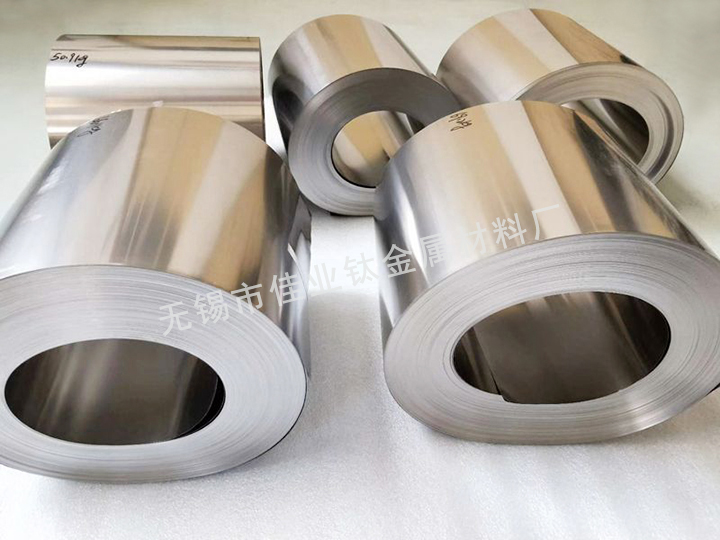 鈦箔是厚度小于等于0.1mm的鈦板、帶、卷或片材。考核鈦箔材厚度的另一種指標是單位面積的重量,如g/m或oz/fi等,該值越大表明厚度越大。鈦箔的寬度根據用戶的要求剪切而得。然而制造時寬度越大,生產率越高。軋輥輥身的長度決定了軋制箔材的寬度,軋件越寬、越薄、越硬則越難軋。軋制鈦箔的寬度約600mm。鈦及合金箔主要用于電子、儀器儀表等部門。